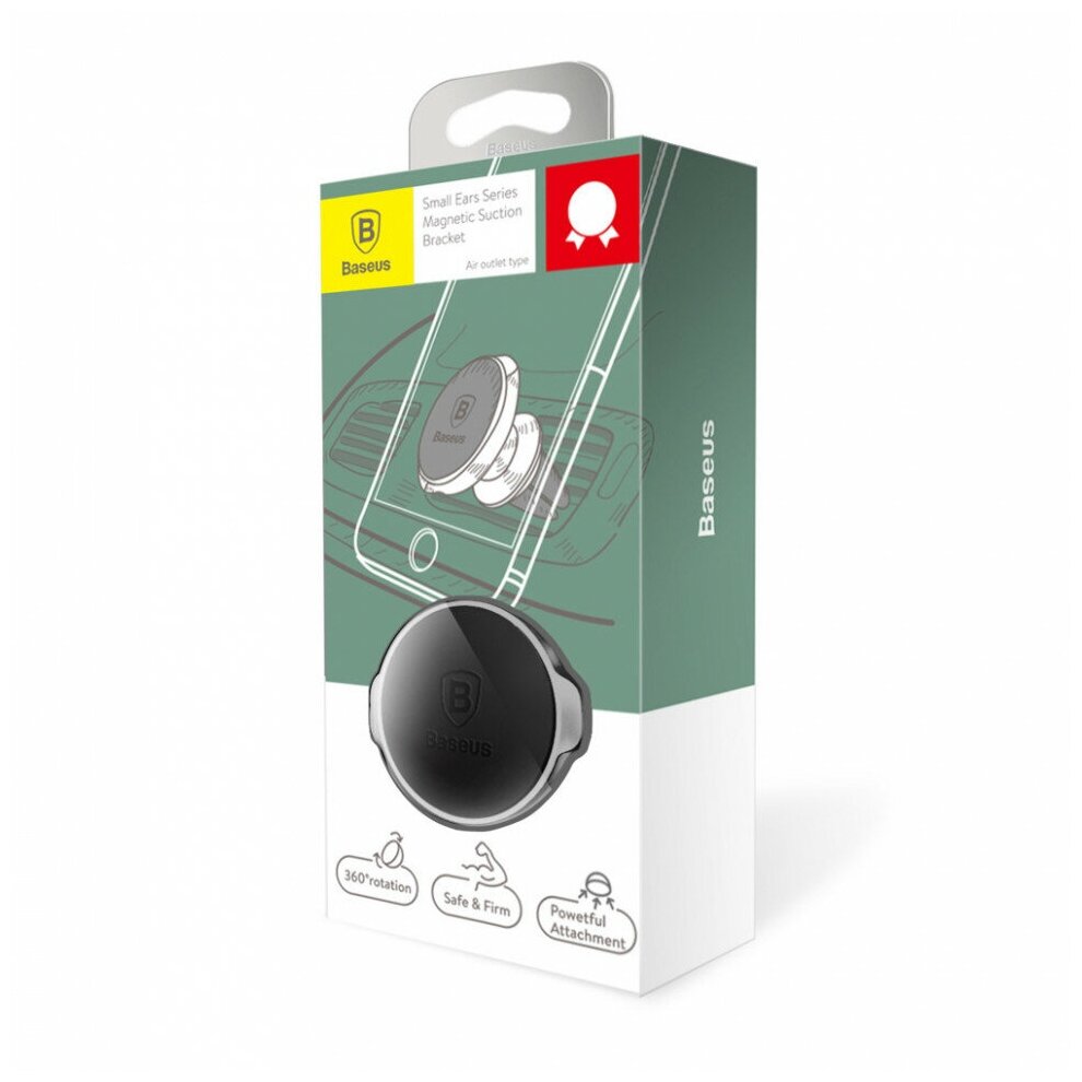 Baseus Small Ear Series Magnetic представляет собой автомобильный магнитный держатель, который вставляется в дефлектор при помощи специального крепления в виде прищепки. Держатель совместим с телефонами, навигаторами, плеерами и другими устройствами, диагональ которых не более 5".