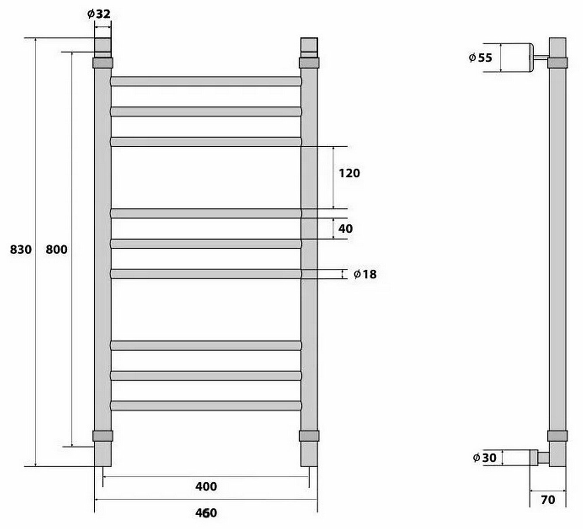 - Электрический полотенцесушитель лесенка ENERGY H 800x400. Обзор модели
