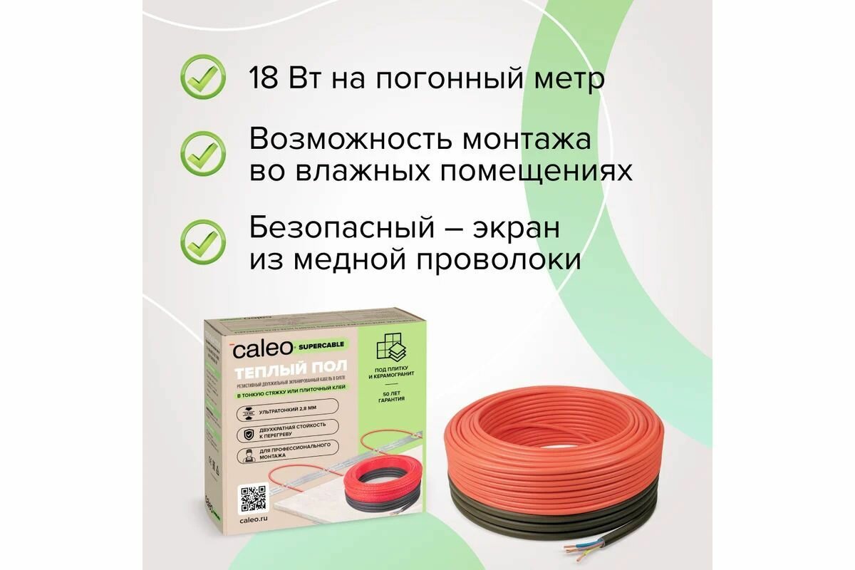 Нагревательный кабель 15 м<sup>2</sup> Caleo CABLE 18W-100