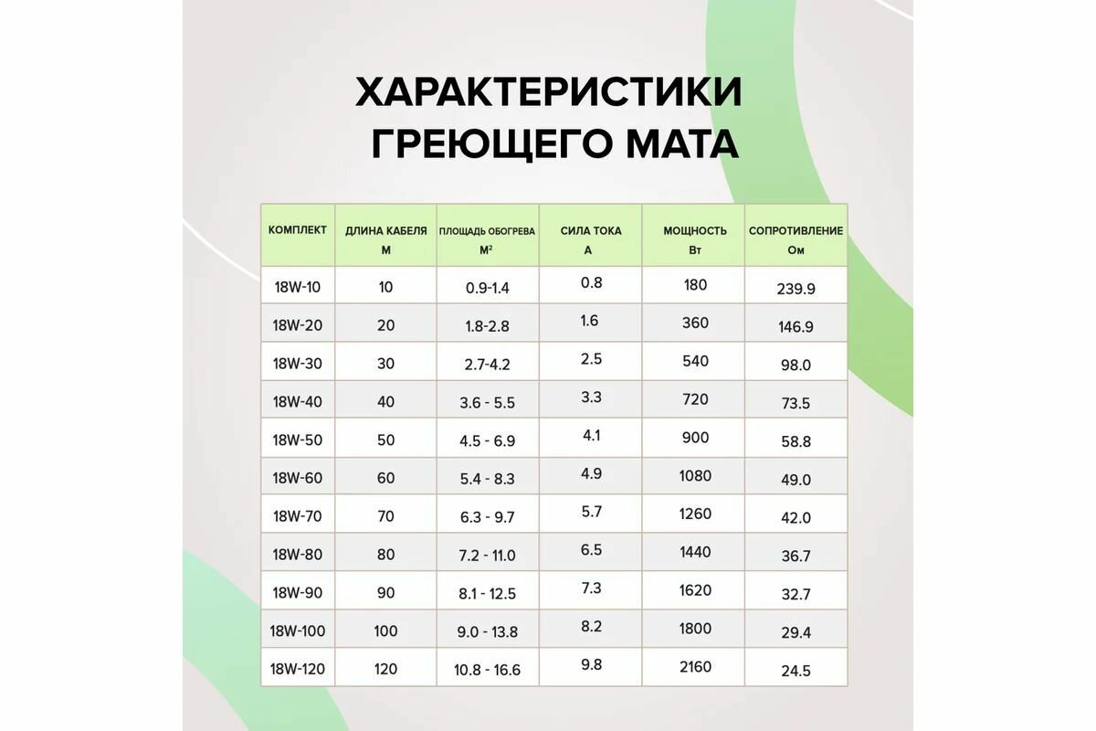 | Удельная мощность | 130 Вт/м² (до 200 Вт/м², зависит от шага укладки) |