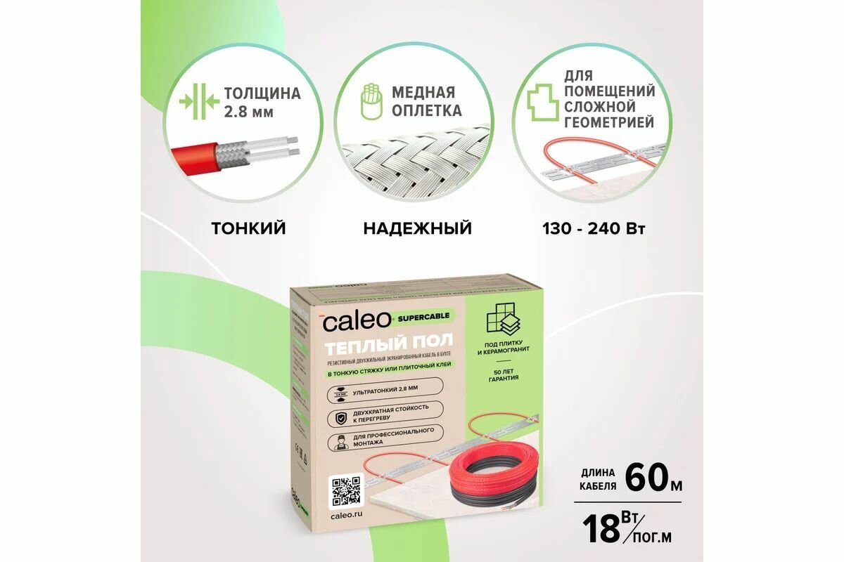 Нагревательный кабель 12 м<sup>2</sup> Caleo CABLE 18W-90