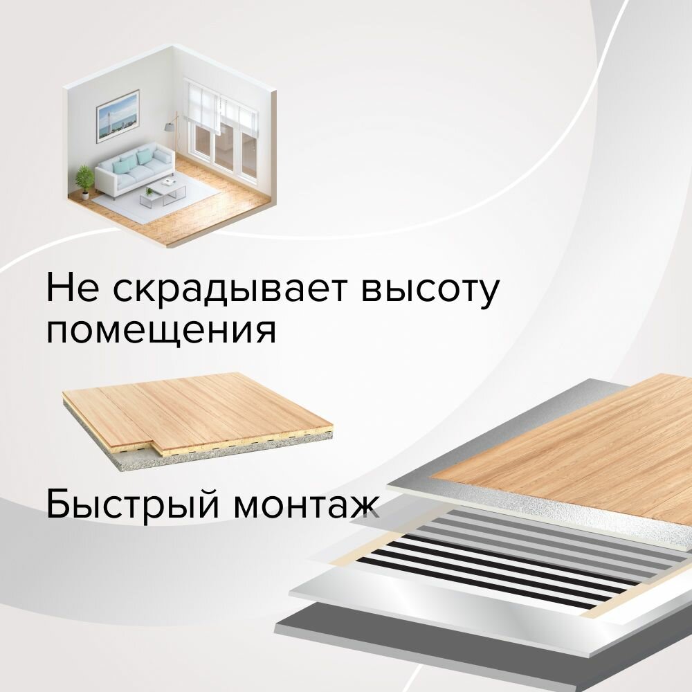 Теплый пол Caleo SILVER — это универсальное решение для обогрева, подходящее для укладки под ламинат, кварцвинил (SPC), ковролин, линолеум и паркетную доску. Монтаж осуществляется сухим методом, что не требует использования стяжки и клея, делая установку максимально простой и быстрой. Инфракрасный принцип обогрева, на котором основана работа этого теплого пола, позволяет сохранять комфортный микроклимат в помещении: в процессе работы не сжигается кислород, не выделяются посторонние запахи. Благодаря запатентованной антиискровой технологии GRIDIRON-S с серебряной сеткой, эксплуатация Caleo SILVER абсолютно безопасна. Дополнительным преимуществом является высокий уровень энергосбережения, который делает этот пленочный теплый пол эффективным и экономичным решением для домашнего использования.
