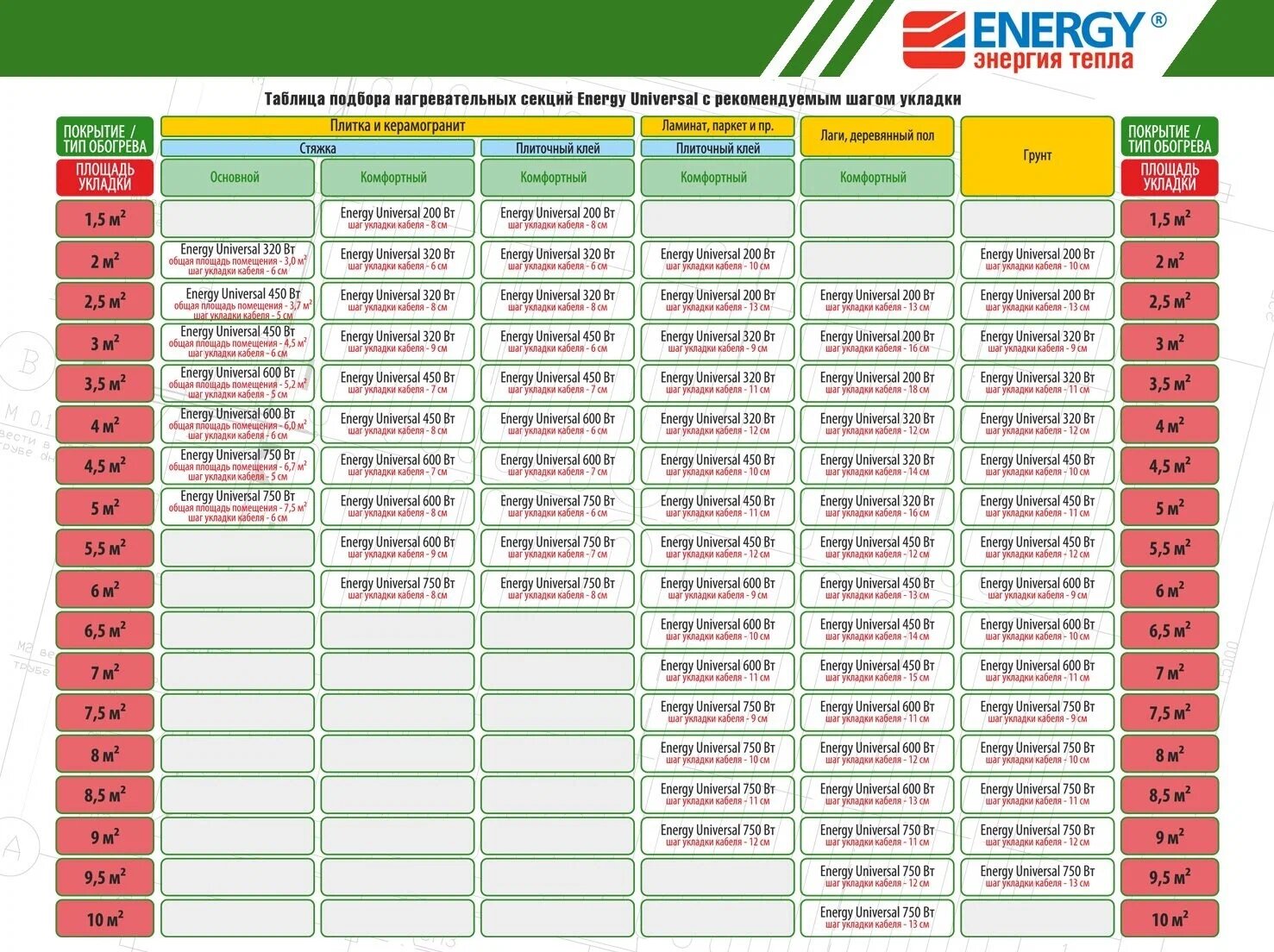 Основные преимущества использования рассматриваемой модели теплого пола от бренда Energy: