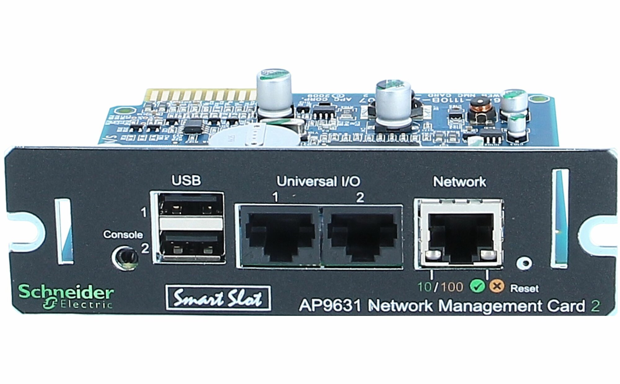 | Характеристики | Интерфейс SmartSlot, RJ45 1 порт 10/100 Мбит/сек Протоколы HTTP, HTTPS, IPv4, IPv6, NTP, SMTP, SNMP v1, SNMP v2c, SNMP v3, SSH V1, SSH V2, SSL, TCP/IP, Telnet |