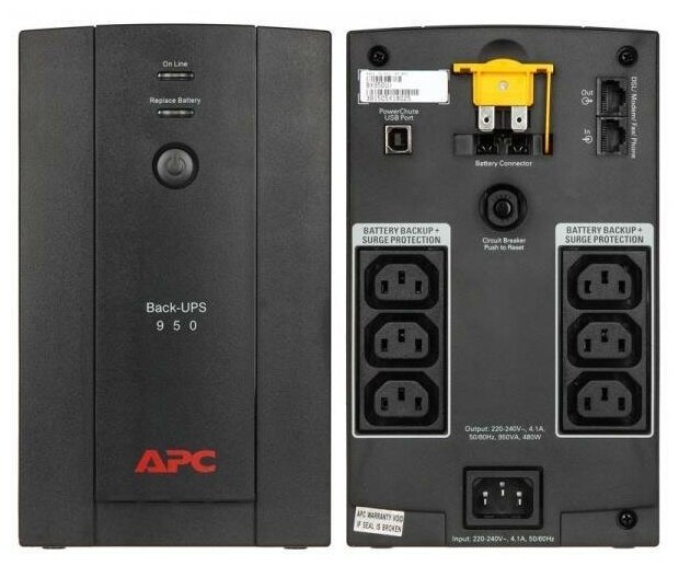 ИБП APC Back-UPS 950VA поставил недавно. Его мне друг посоветовал. Ну, действительно, вещь нужная в офисе. Он хорошо защищает телефонные линии от резких всплесков напряжения. Регулирует напряжение он автоматически, в соответствии с нормальной работой оборудования. ИБП регулярно производит самостоятельную самодиагностику, чтоб потом просигнализировать когда надо будет заменять батарею. Приходит уведомление об отказе от батареи. Это позволяет своевременно осуществить профилактические действия. Также, тут стоит многоразовый автоматический предохранитель, так что после перезагрузки замена предохранителя не нужна. Заказывал здесь.