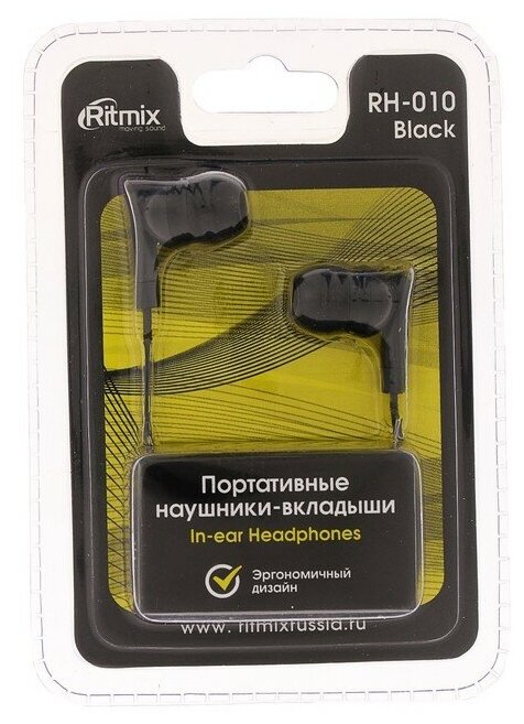 Проводные наушники RITMIX RH-010 представлены в черном компактном корпусе и используют вставные амбушюры, которые прилегают к ушным раковинам настолько плотно, что исключают даже малейшую потерю звуков. Модель соответствует звуковому формату 2.0 и предназначена для использования с мобильными устройствами, плеерами и иной техникой, поддерживающей подключение посредством разъема jack 3.5 мм. Кабель длиной 1.2 м используется для подключения наушников: кабель оборудован штекером прямой формы.