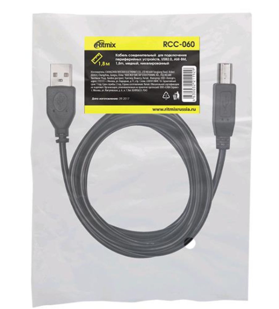 Ritmix – это кабель для подключения принтеров, сканеров, профессиональных микрофонов и прочих устройств. Поддерживает интерфейс USB 2.0.