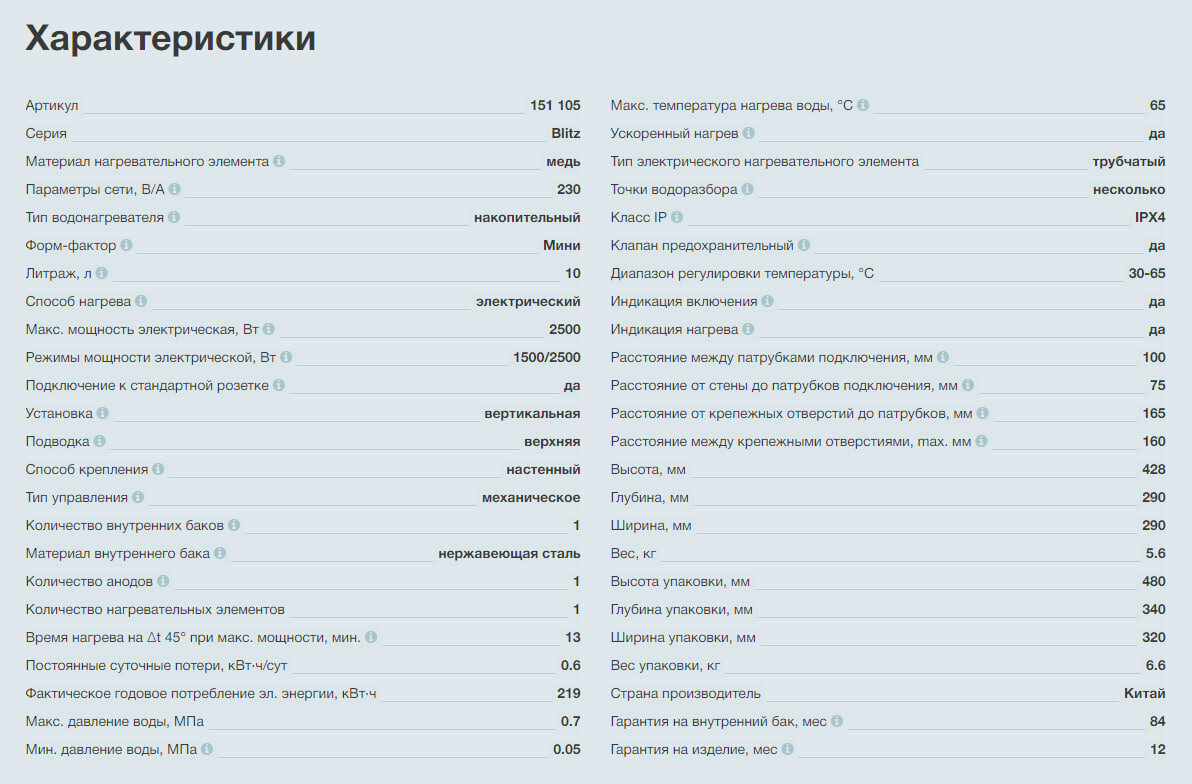 Брал на дачу для мытья посуды и нагрева воды для мелких бытовых нужд, со своей задачей справляется на отлично, номинальная мощность 1.5 квт и 2.5квт в режиме турбо. Крпус собран без косяков, бак нержавейка.