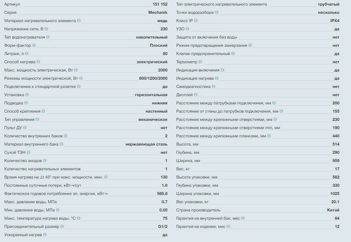 | Время нагрева воды до максимальной температуры | 113 мин |