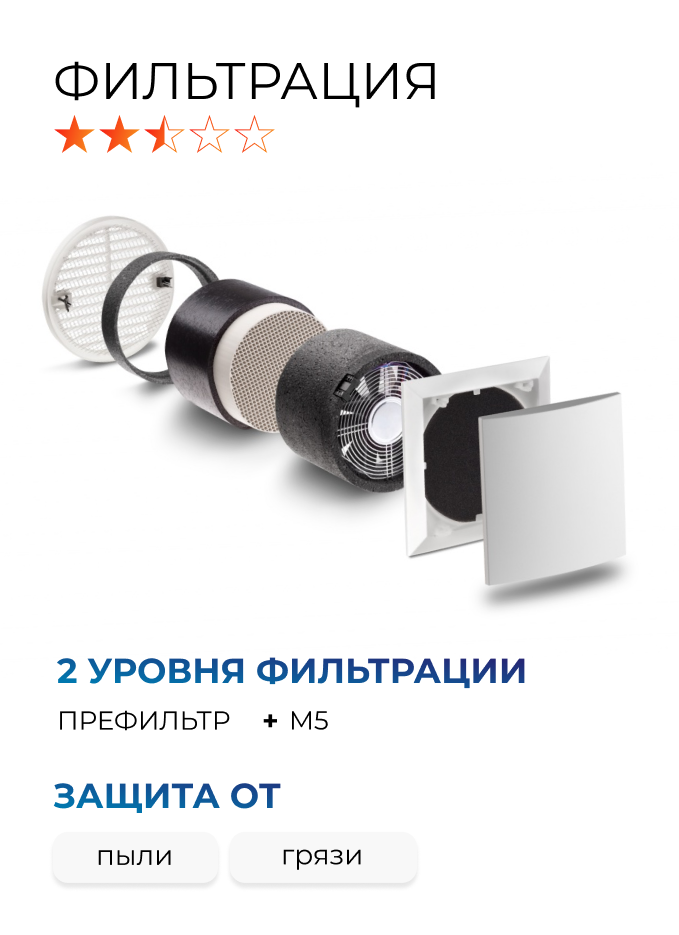 Вентиляционные установки Aspira, представленные в серии ASPIRVELO AIR ECOCOMFORT, обеспечат поставку в помещение свежего воздуха и при этом исключат проникновение внутрь уличной пыли и копоти, а также потерю тепла или прохлады, поддерживаемых системой отопления или кондиционирования. Для устранения из уличного воздуха нежелательных примесей прибор оснащен сменным фильтром класса G3, а для сохранения заданных климатических условий в помещении прибор оборудован высокоэффективным керамическим рекуператором тепла.