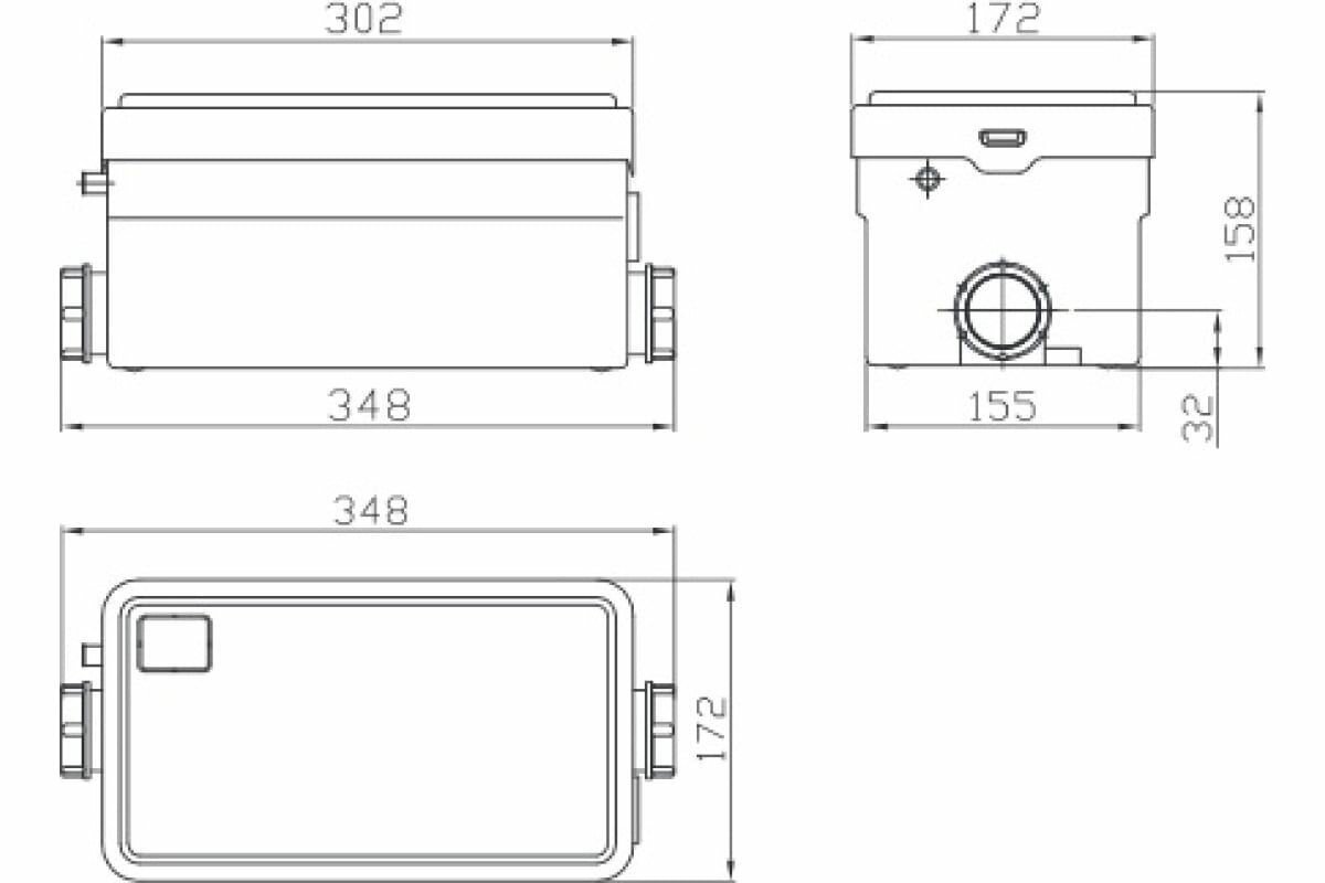 - Выходной патрубок Ø 23/28/32 мм (в канализацию).