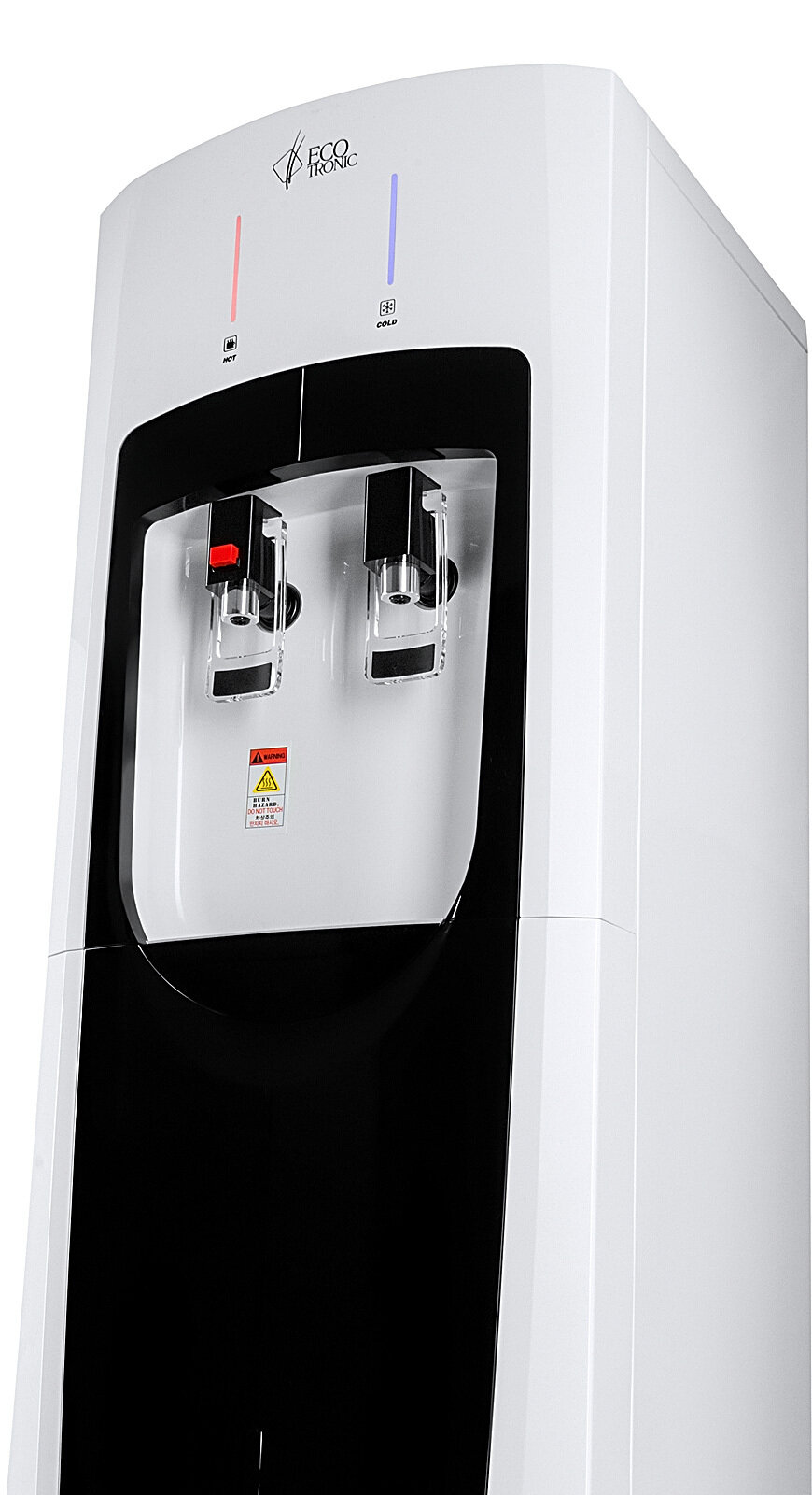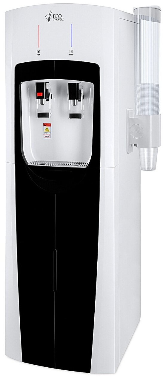 Пурифайер Ecotronic (Экотроник) содержит базовую утрафильтрацию воды, а так же баки для холодной и горячей воды большой емкости по 7 л. Таким образом можно обеспечить водой достаточно большой офис. Пурифайер выполнен в современном стильном дизайне белого цвета с черными вставками. Защита от ошпаривания для безопасного пользования.
