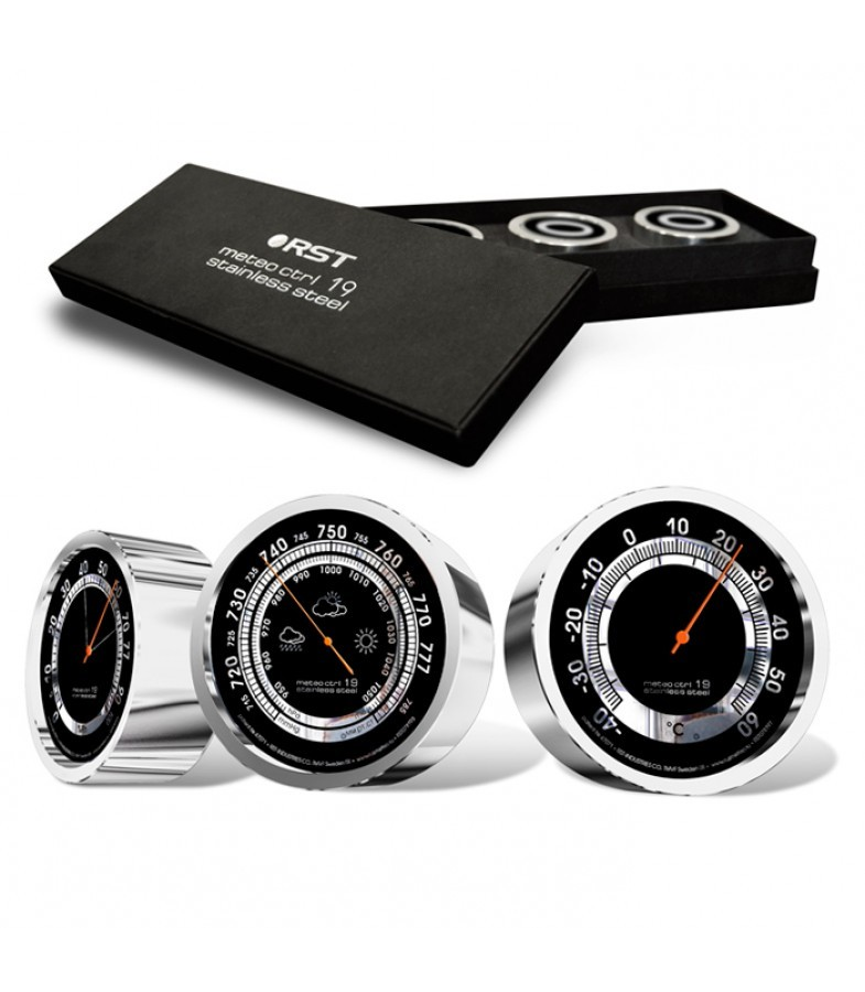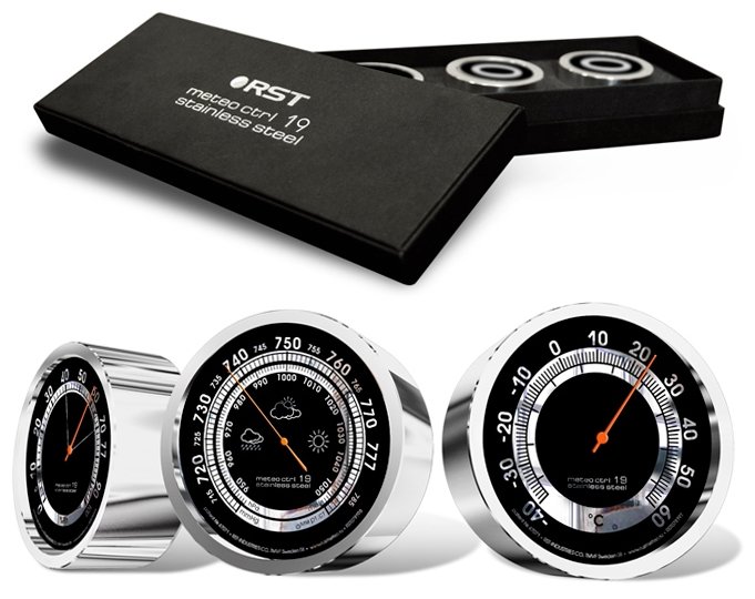 Одной из множества достойных восхищения особенностей новых настольных погодных станций (термометр, барометр, гигрометр) элитного класса, серии Meteo Ctrl Stainless steel, разработанных специалистами компании RST Sweden специально для Российского рынка, являются эксклюзивные дисплеи изготовленные из алюминия произведённого в Японии, обработанного по новейшей технологии. Зеркальные металлические части дисплеев в сочетании с покрытием серого или чёрного цвета смотрятся неожиданно, но изумительно красиво.