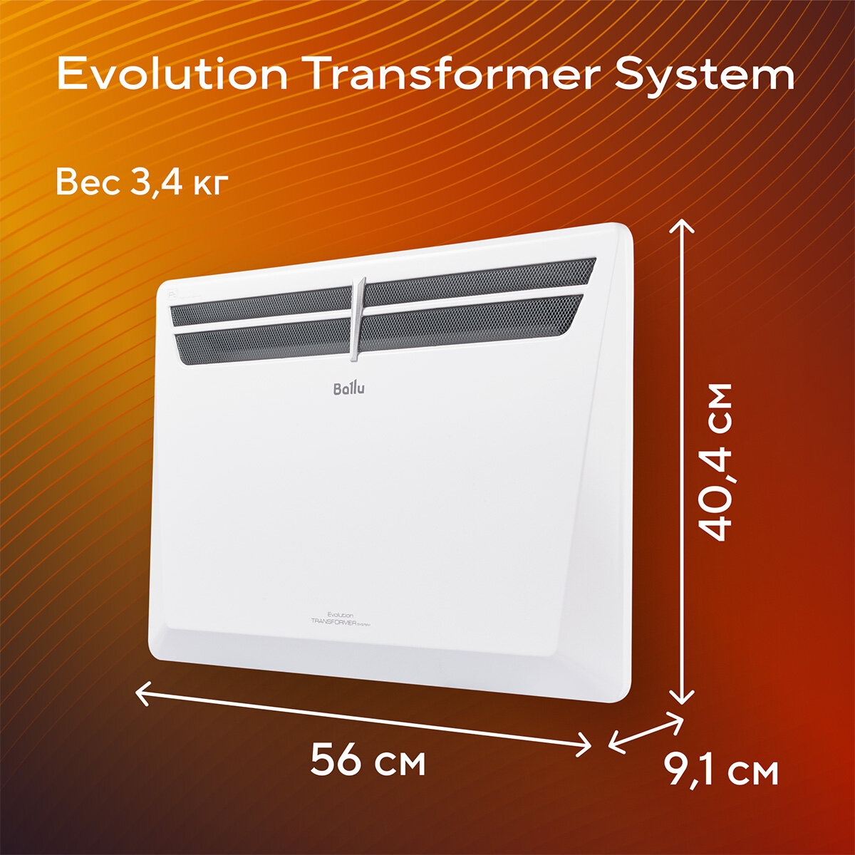Электрический конвектор Ballu Evolution Transformer - это бесшумный монолитный нагревательный элемент нового поколения на 20% компактнее и эффективнее стандартных нагревательных элементов, позволяющий быстрый и эффективно обогревать помещение.