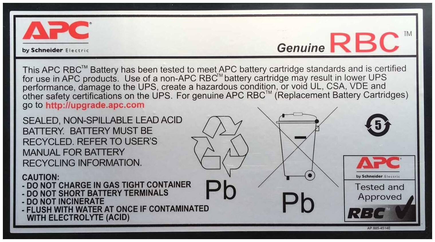 Подлинные сменные картриджи батарей APC RBC протестированы и сертифицированы на совместимость, что гарантирует восстановление рабочих характеристик ИБП до уровня, заданного в исходных спецификациях.