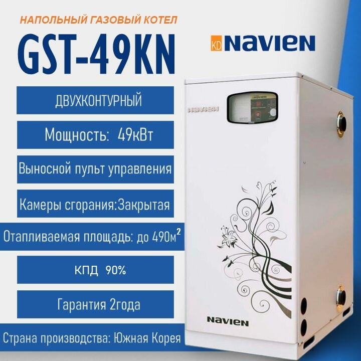 NAVIEN (Навьен) GST 40 KN обогреет ваш дом, снабдит его горячей водой. Компактный по размерам, удобный в использовании. На нем установлена система против замерзания, которая обеспечит постоянную подачу тепла и воды. Новые технологии позволяют котлу выводить дым из помещения сразу на улицу. Помимо этого на нем установлена программа стабилизирующая напряжение сети. Дополнительным плюсом является наличие дистанционного пульта, он облегчит пользование вашим новым приобретением.