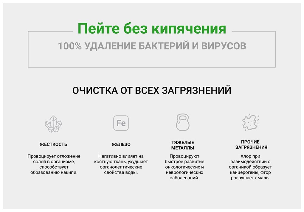 - Дёшево. Качество как у дорогих фильтров обратного осмоса. Малые размеры.