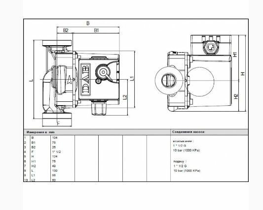 - Типы перекачиваемых сред: вода, смеси с этиленгликолем (макс. содержание гликоля 30%);
