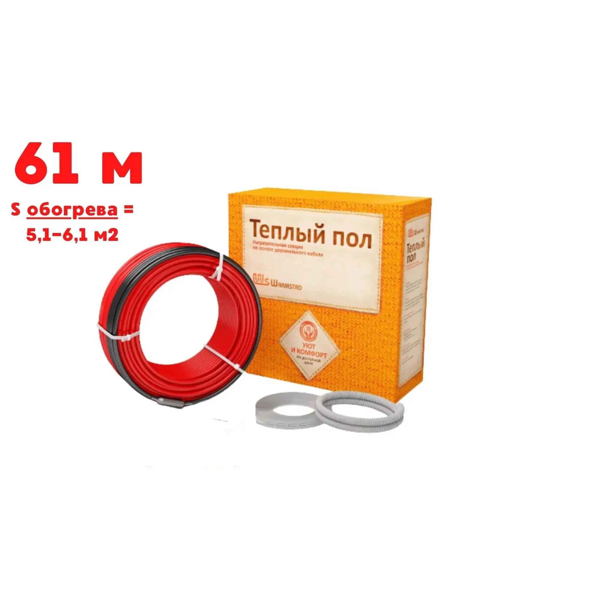 Нагревательный кабель 6 м<sup>2</sup> Warmstad WSS 61,0 м/910 Вт