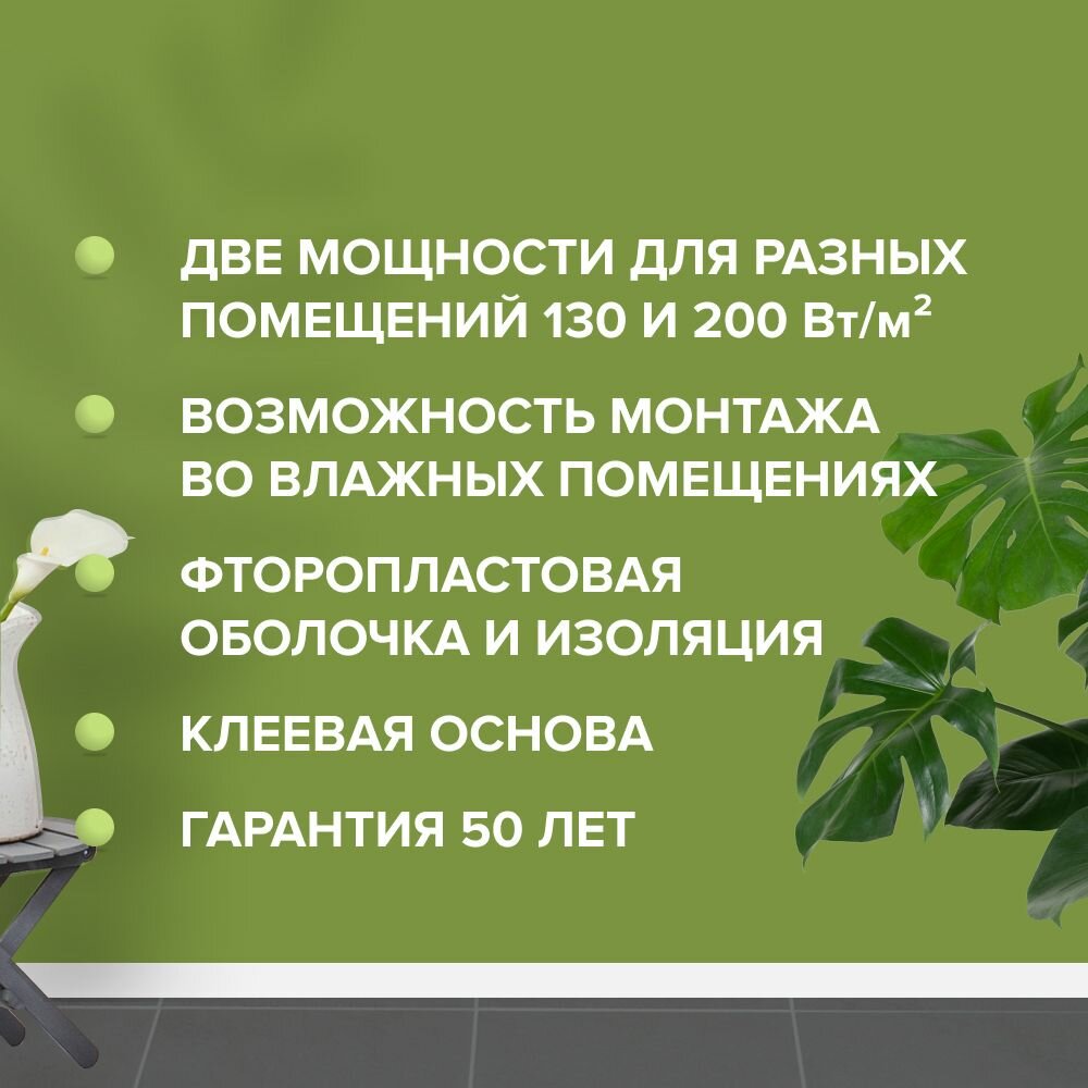 - 200 Вт/м2 подходит для холодных помещений (балконы, лоджии, веранды, цокольные этажи)