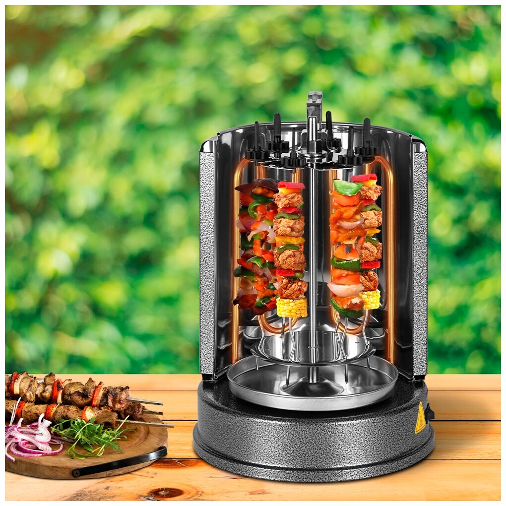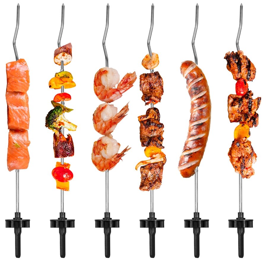 Электрошашлычница предназначена для приготовления шашлыка из мяса, рыбы или овощей, шавермы (шаурмы), сарделек, сосисок, картошки, курицы-гриль (в том числе целиком), гренок и других блюд.