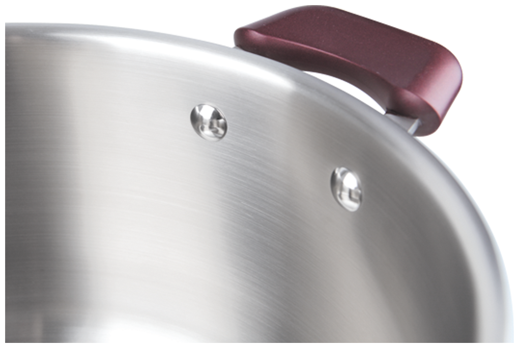 | Прочие особенности и свойства | Материал Высококачественная нержавеющая сталь 18/10,Основной цвет Стальной,Технология Тройное вштампованное, а затем вплавленное дно,Внутреннее покрытие Без покрытия,Внешнее покрытие и отделка Сатинированная полировка корпуса,Толщина стенок 0,5 мм,Толщина дна 5,0 мм,Материал крышки Термостойкое стекло,Аксессуары Эргономичные из бакелита с силиконовым напылением,Тип крепления аксессуаров Клепочное,Преимущества Внутренние отметки литража,Высокие стенки корпуса – большой литраж посуды,Ободок крышки из нержавеющей стали против сколов и трещин,Использование Не подходит для духовки,Не рекомендуется мыть в посудомоечной машине,Подходит для всех видов плит,Упаковка Подарочная коробка с ручкой,Гарантия 25 лет |