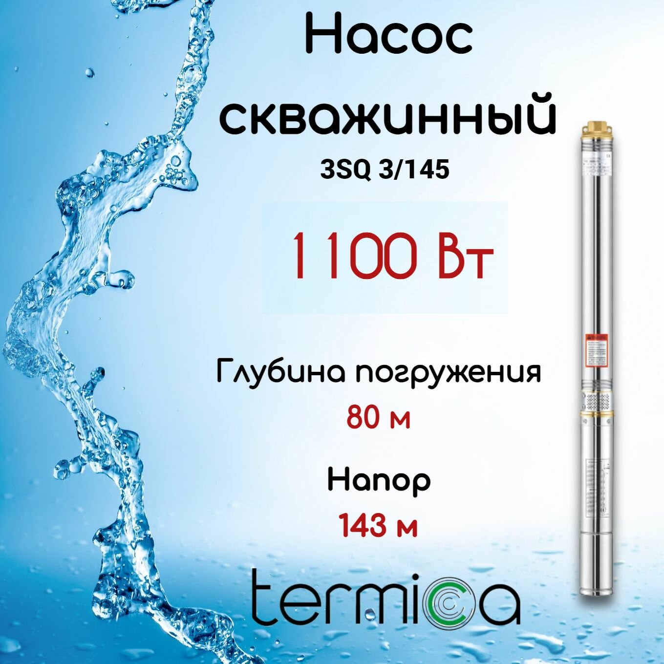 Высокопроизводительный скважинный насос Termica (Термика) идеально подойдет для организации системы холодного водоснабжения, источником воды в которой является скважина. Оборудование имеет продуманную конструкцию и качественное исполнение, благодаря чему не требует частого технического обслуживания и способно бесперебойно служить долгие годы.