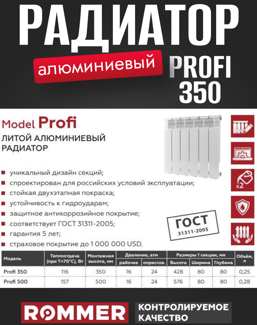 Сервис сравнения цен СкидкаГИД предлагает сравнить цены на товар «Алюминиевый радиатор Rommer Profi 350 6 секций»