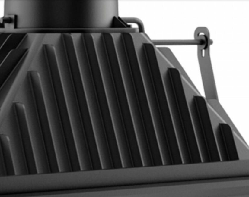 – чугунные топочные камеры польского предприятия Kratki, которое производит большой ассортимент каминной продукции. Отопительный прибор большой мощности – топка серии – предназначена для отопления более 150 кв.м. жилой площади. Материал, из которого изготовлена топка – термостойкий чугун с толщиной стенок 8 мм. Увеличению теплообмена способствует высокая степень ребристости корпуса. Встроенный демпфер позволяет регулировать подачу воздуха, влияя на интенсивность горения дров.