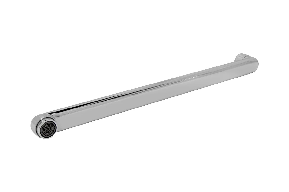 L-образный, плоский излив для смесителя в ванной комнате, длиной: 40 см., предназначен для подачи поступающей воды. Изготовлен из нержавеющей стали с хромированным покрытием.Обеспечит мощный поток воды и быстрое наполнение ванны. Имеет современный вид, идеально впишется в любой дизайн ванной комнаты. Оснащен присоединительной гайкой и аэратором, формирующим мягкую и ровную струю воды, а так же позволяющую экономить на расходе воды. Диаметр резьбы подключения 3/4"
