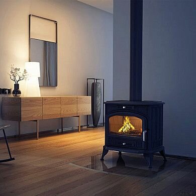 - Дверца печи камина декорирована стеклом, которое может выдержать температуру до 750 градусов