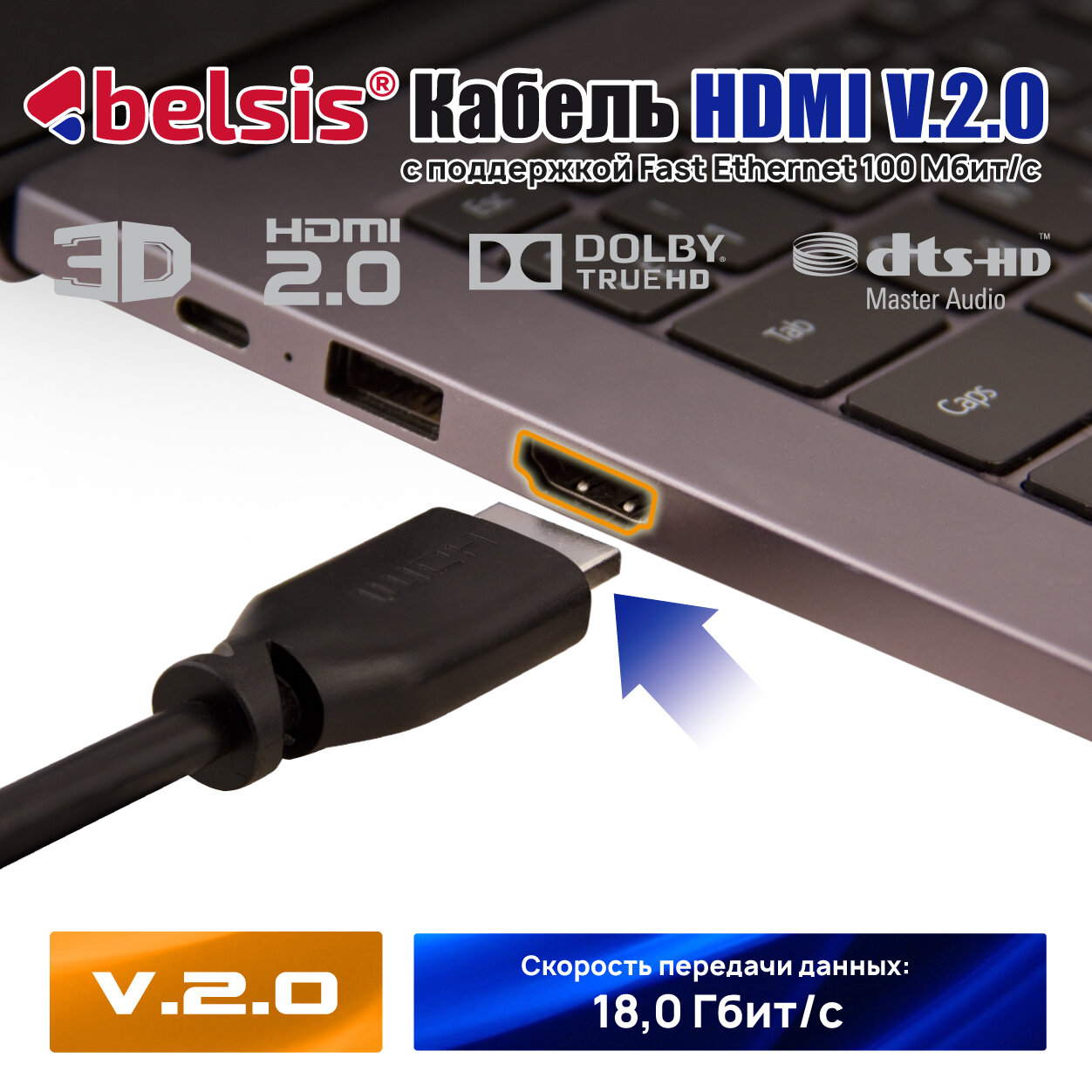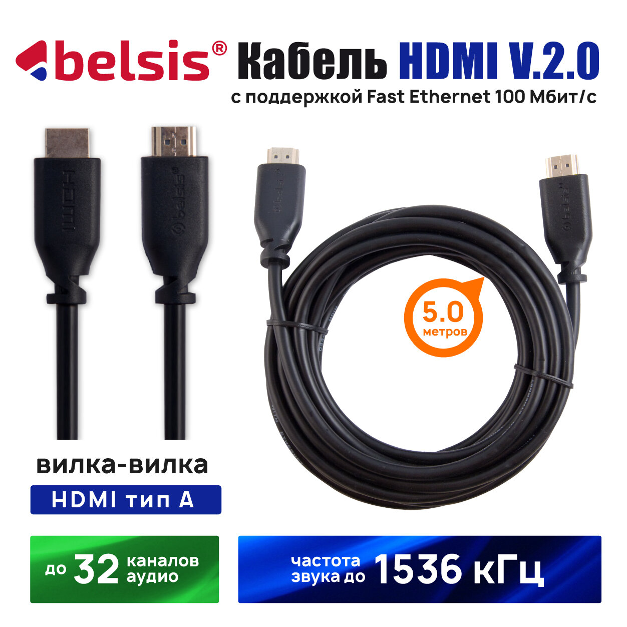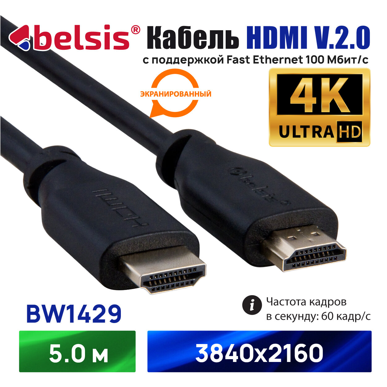 Кабель HDMI v.2.0 вилка - вилка 2.0 м. черный Цветная коробка Belsis BW1426