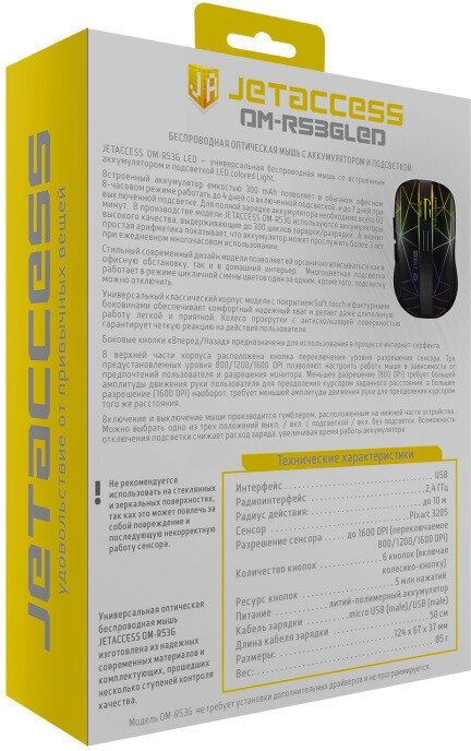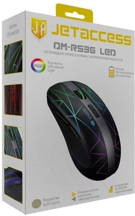 JETACCESS OM-R53G — универсальная беспроводная мышь со встроенным аккумулятором и подсветкой LED colored Light.