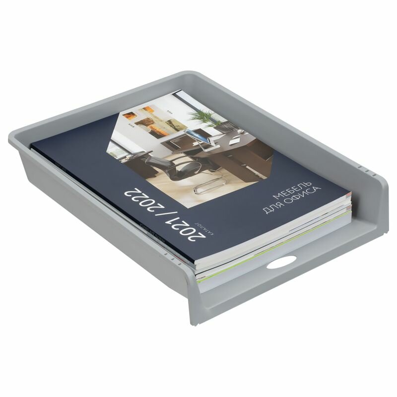 Лоток для бумаг горизонтальный серый ЛТ151 Стамм