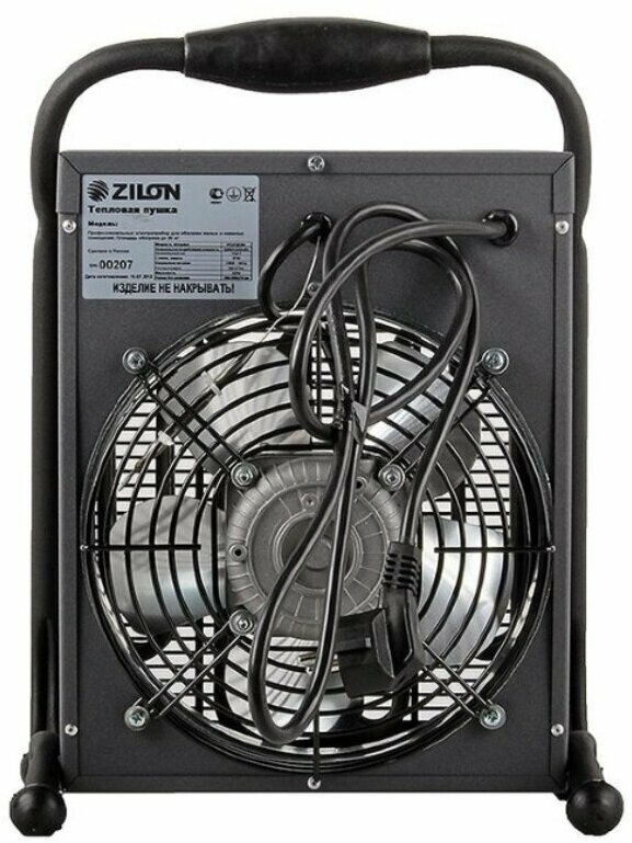 Условия эксплуатации: температура окружающего воздуха от -20 °С до +40 °С при относительной влажности воздуха не более 80%. Мощный электродвигатель гарантирует увеличенный ресурс работы (40 000 ч), в ТЭНы из нержавеющей стали - долгий срок службы прибора. Эргономичная прорезиненная ручка-поставка удобна для переноски и размещения прибора. Две ступени мощности и режим вентиляции позволяют выбрать необходимый режим работы пушки и оптимизировать энергозатраты.