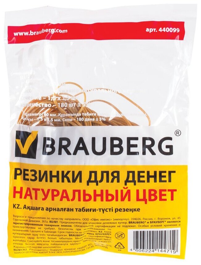 Банковские резинки Brauberg незаменимы во многих сферах жизни — они активно используются в банковском деле, бухгалтерии, офисах, рукоделии и быту. предназначены для фасовки и упаковки денежных купюр.