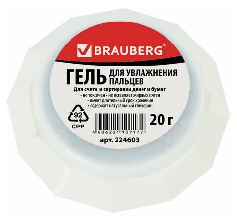 Гель для увлажнения пальцев BRAUBERG 20 г (Малайзия) нежирный нетоксичный без запаха 224603