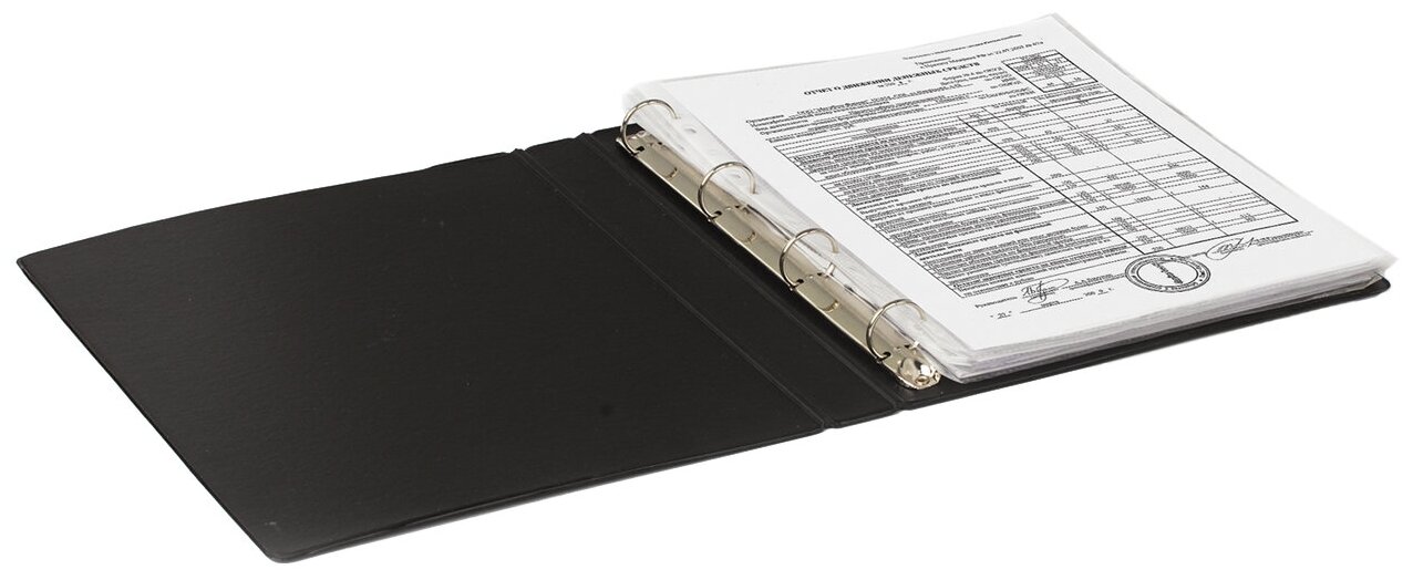 Папка на 4 кольцах BRAUBERG картон/ПВХ 35 мм черная до 180 листов 221483