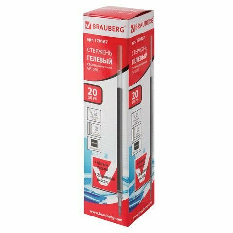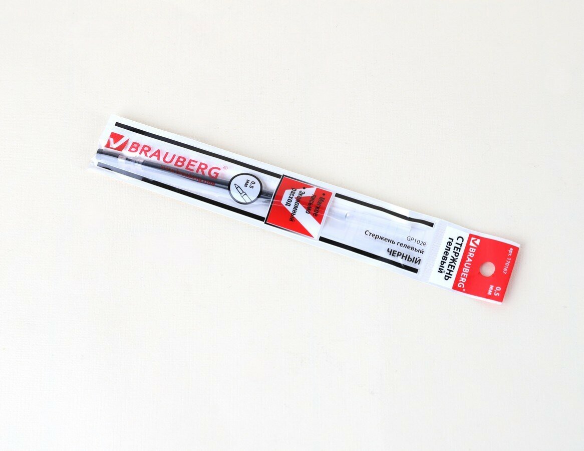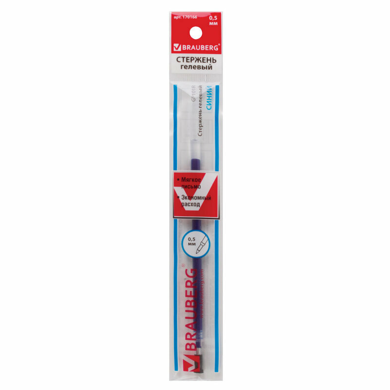 Стержень BRAUBERG с гелевыми чернилами обеспечивает ровное, комфортное письмо. Подходит к большинству неавтоматических гелевых ручек.