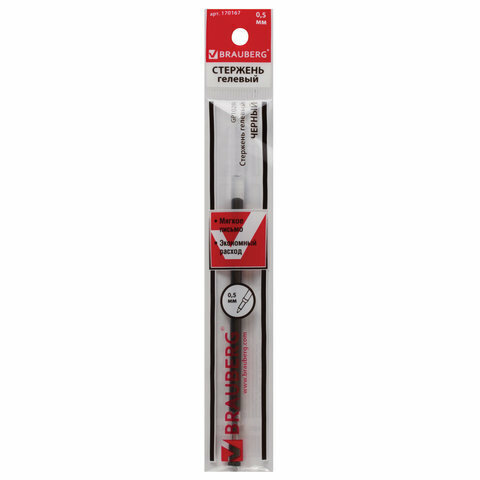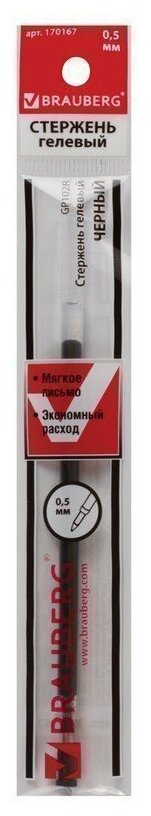 Стержень гелевый BRAUBERG 130 мм евронаконечник узел 05 мм линия 035 мм черный 170167
