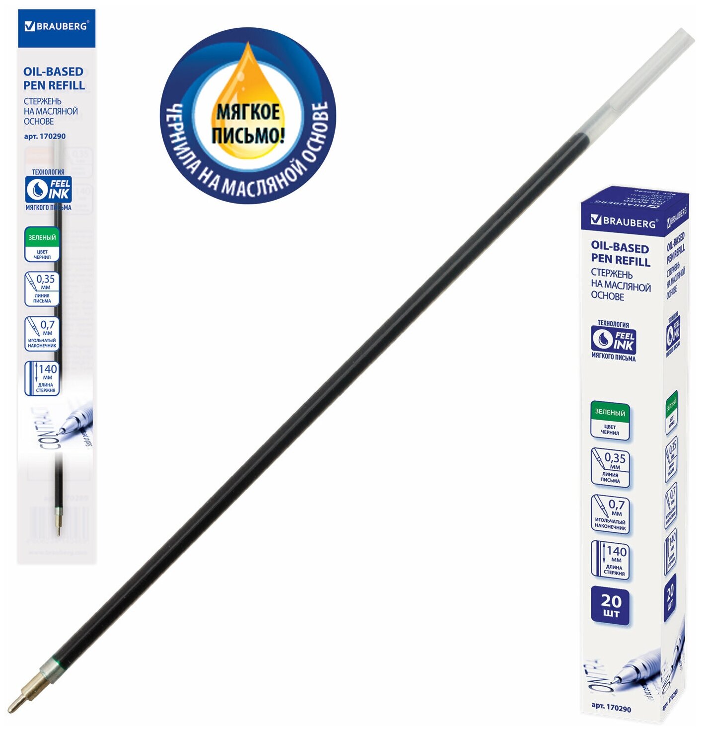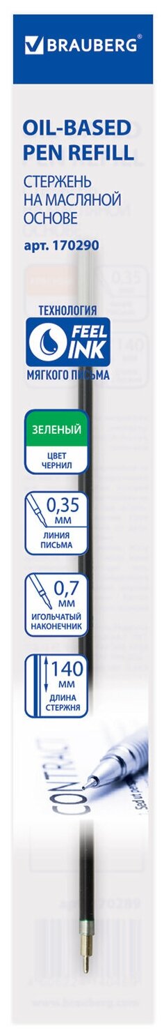 Стержень масляный BRAUBERG 170290 зеленый 0.35 мм