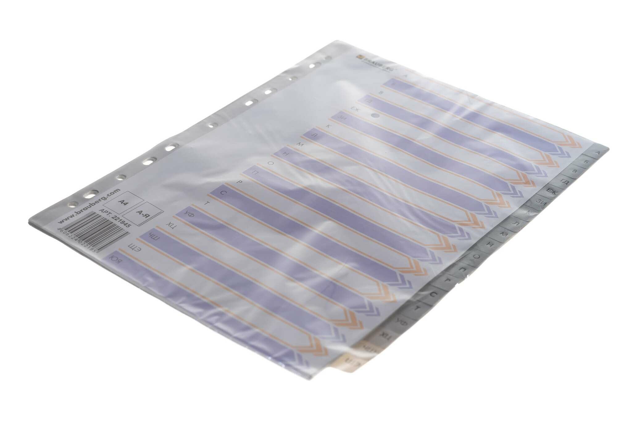 Разделитель пластиковый BRAUBERG для папок А4 алфавитный А-Я с оглавлением серый Китай 221845