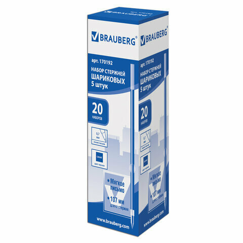 Набор стержней шариковых BRAUBERG 170192 5 шт синий 0.35 мм