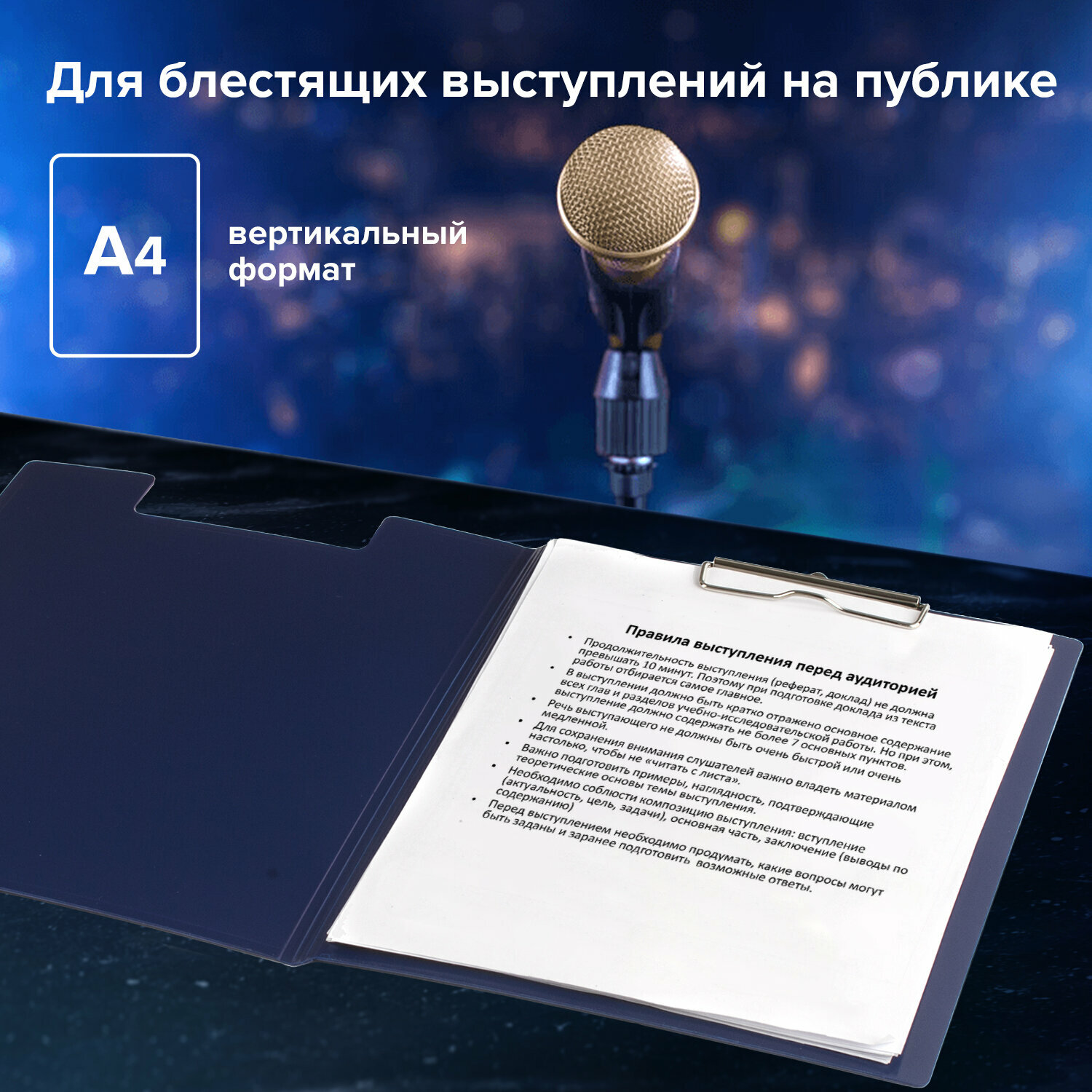Папка-планшет BRAUBERG "Contract" плотная с верхним прижимом и крышкой А4 пластик черный до 80 л. 15мм 223489 Contract, А4 (223489)