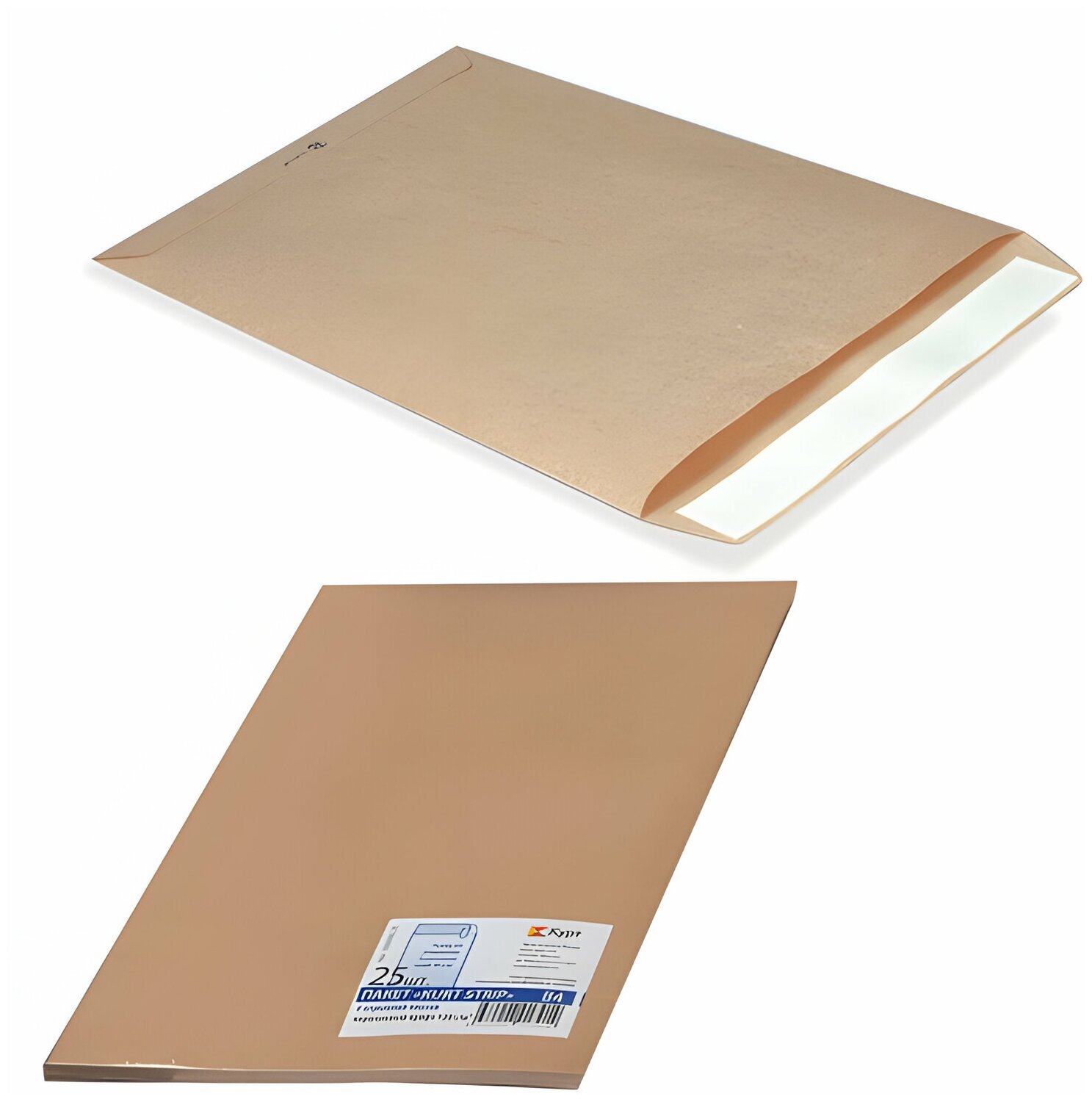 Конверт-пакет С5 плоский комплект 25 шт. 162х229 мм отрывная полоса крафт-бумага коричневый на 90 листов 357707.25 Курт (124230)