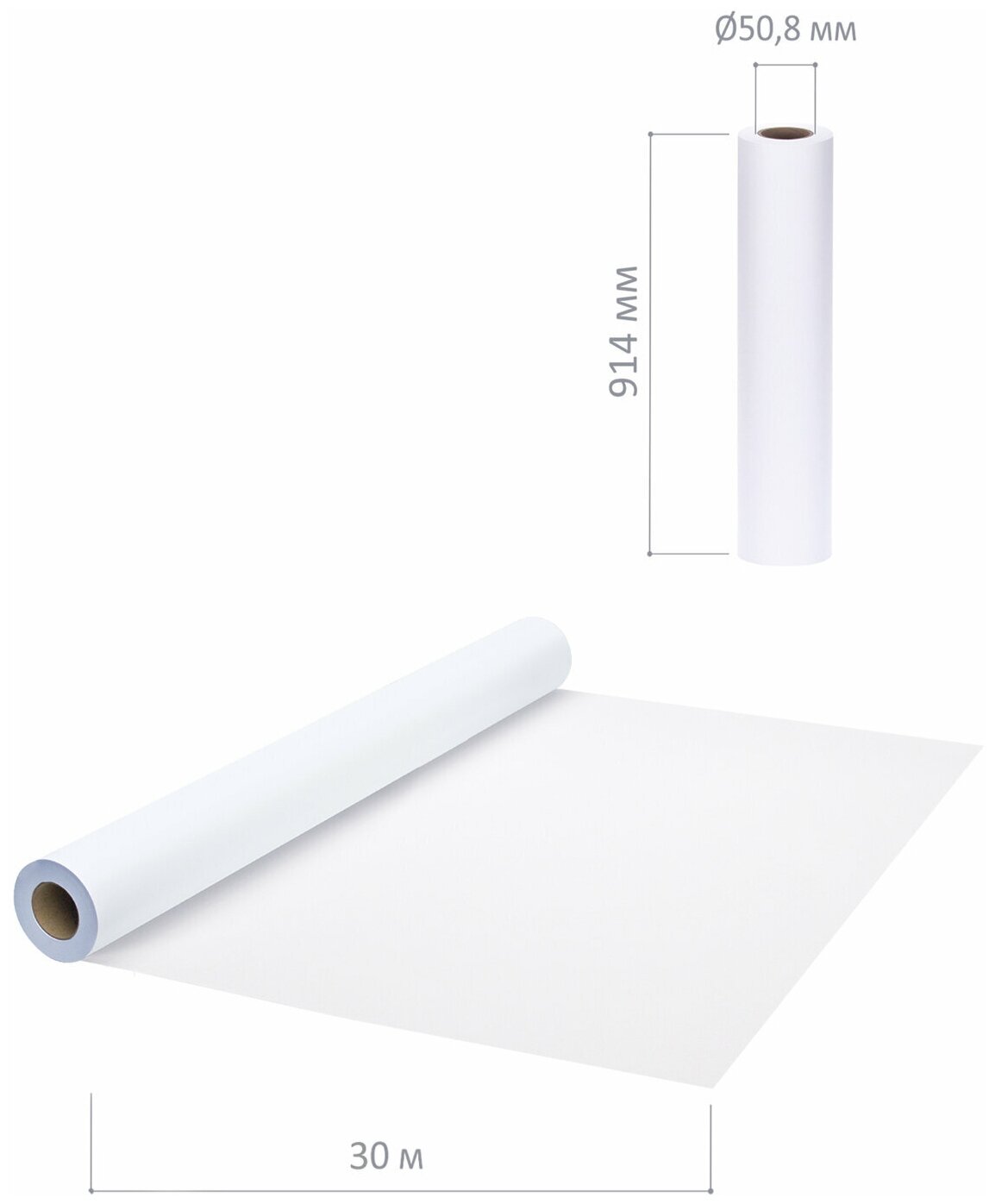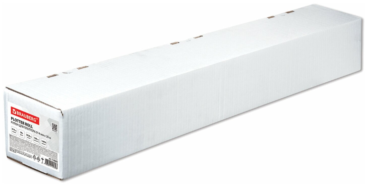 Рулон для плоттера 914 мм х 30 м х втулка 508 мм 120 г/м2 белизна CIE 146% BRAUBERG 110622