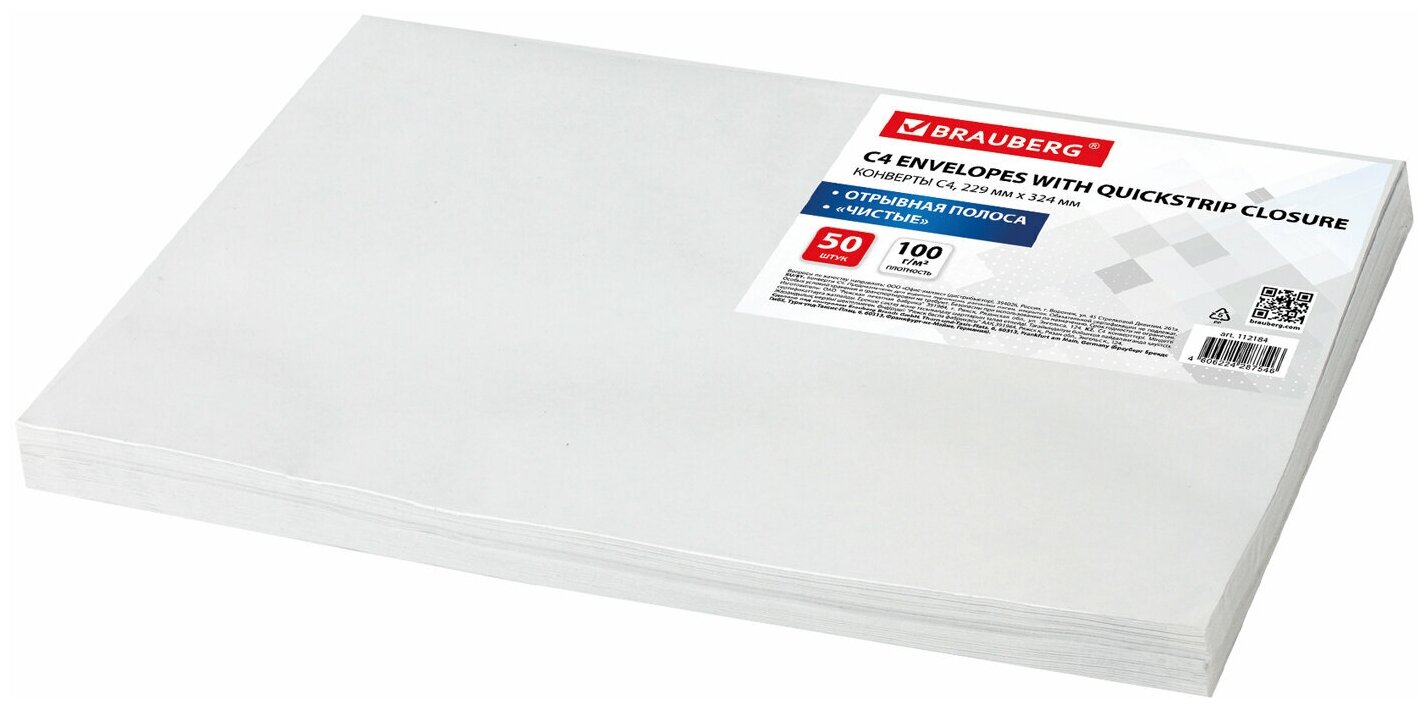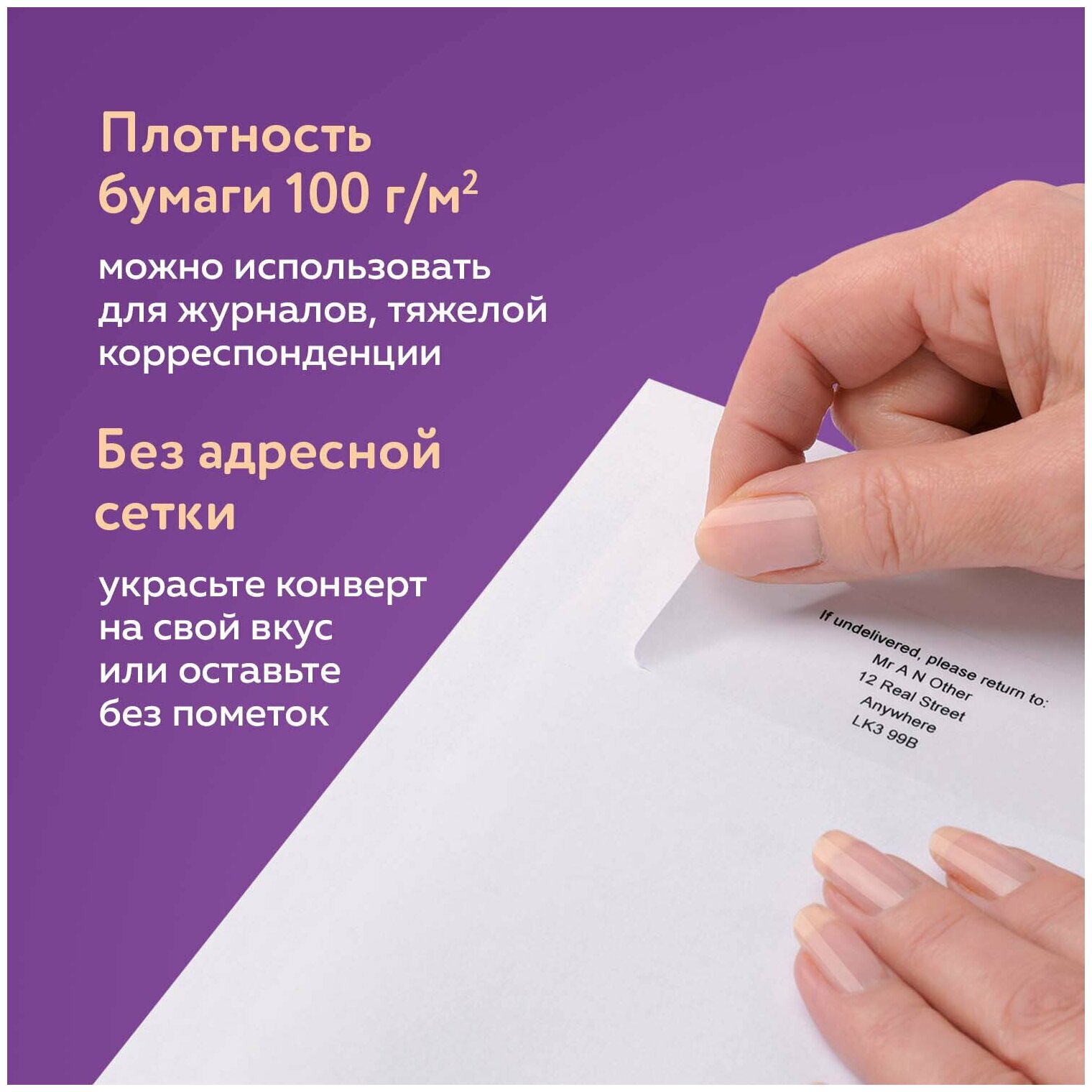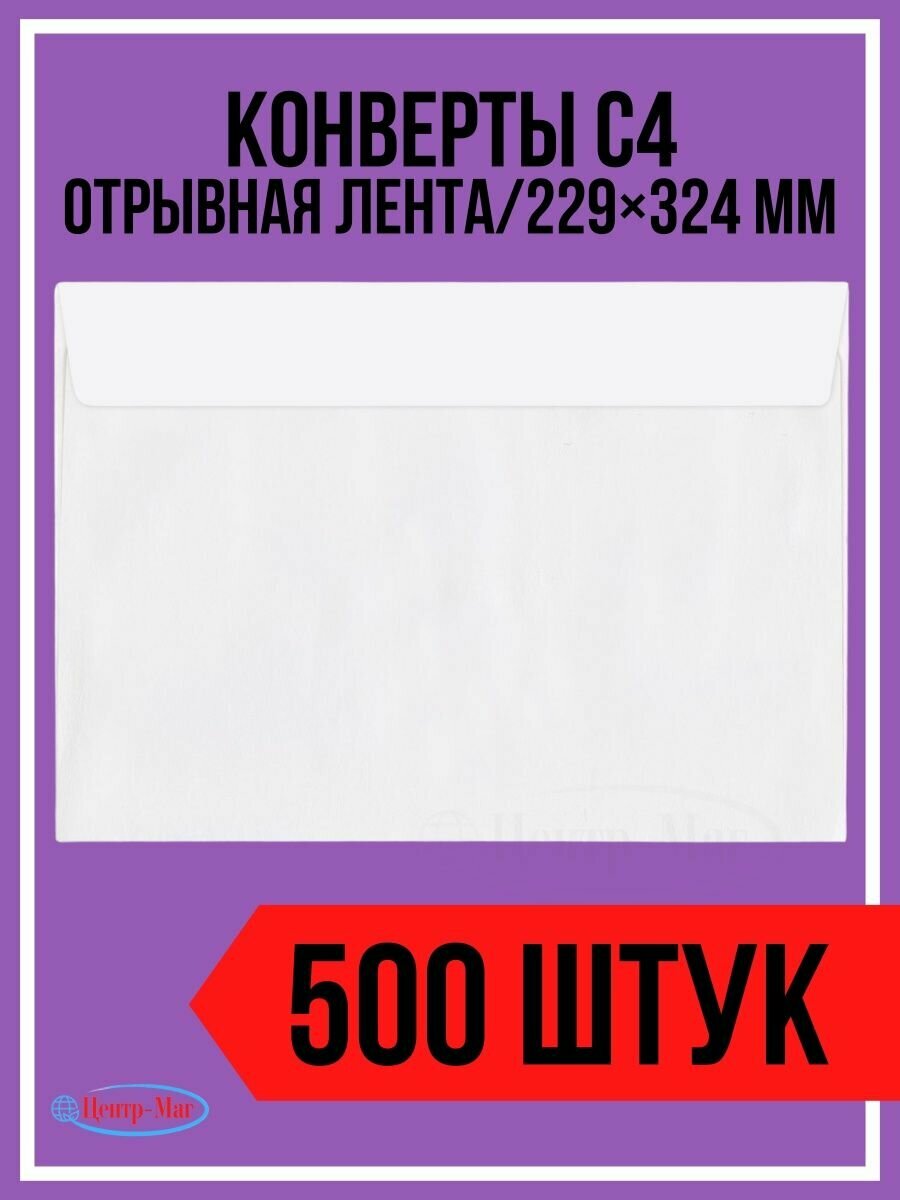 Конверты С4 комплект 500 шт. отрывная полоса STRIP белые 229х324 мм РОДИОН ПРИНТ (124400)