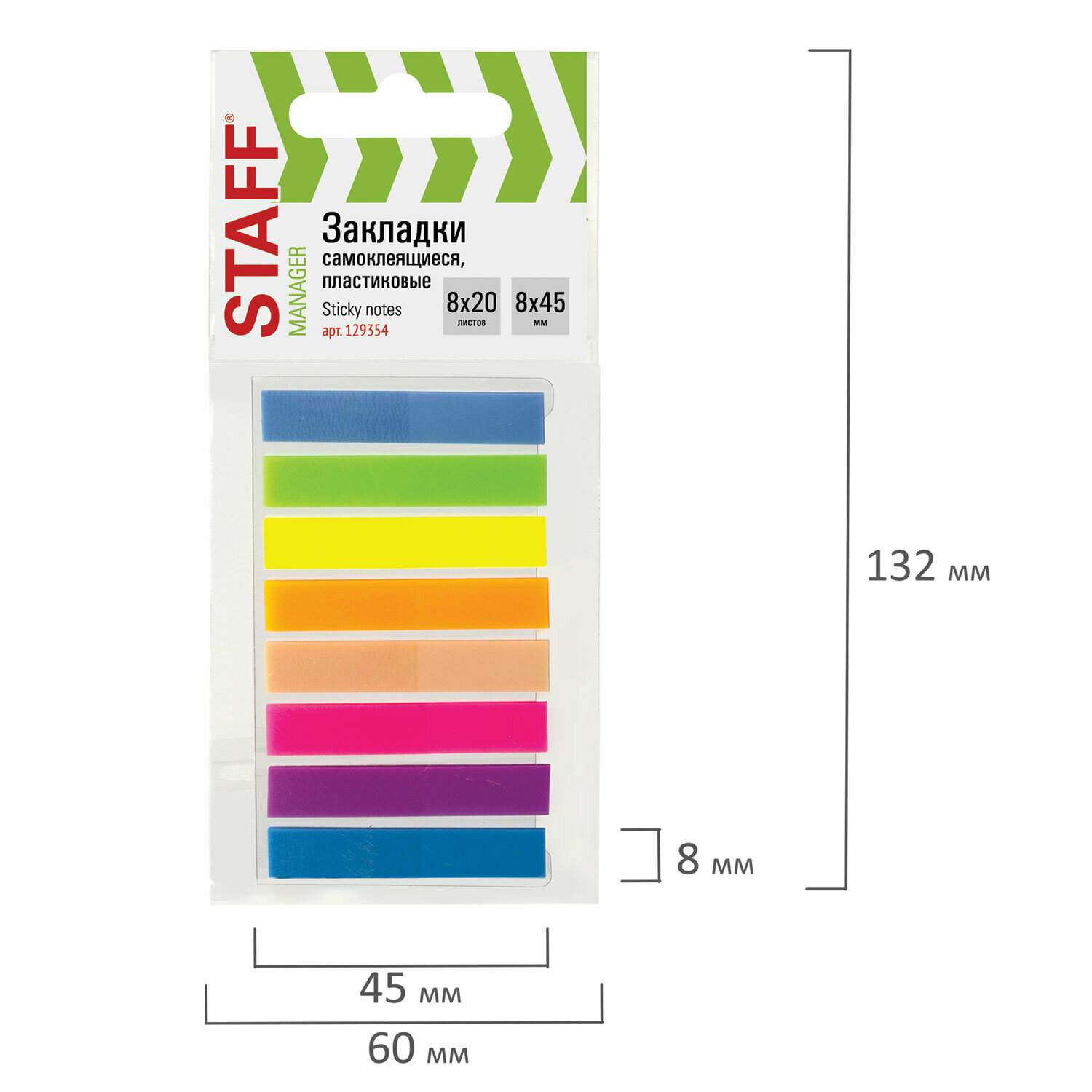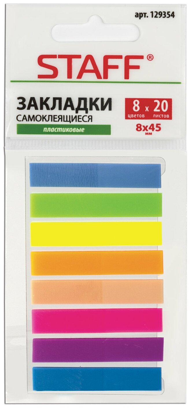 Закладки STAFF 160 листов 45х8 мм ассорти 129354