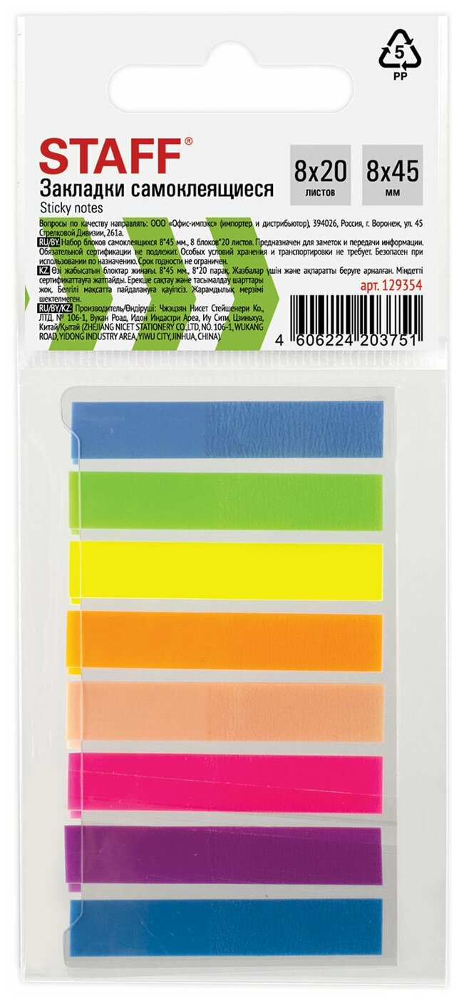 На сегодняшний день товар «Закладки STAFF 160 листов 45х8 мм ассорти 129354» можно купить с кешбеком в 1 магазине: Яндекс.Маркет