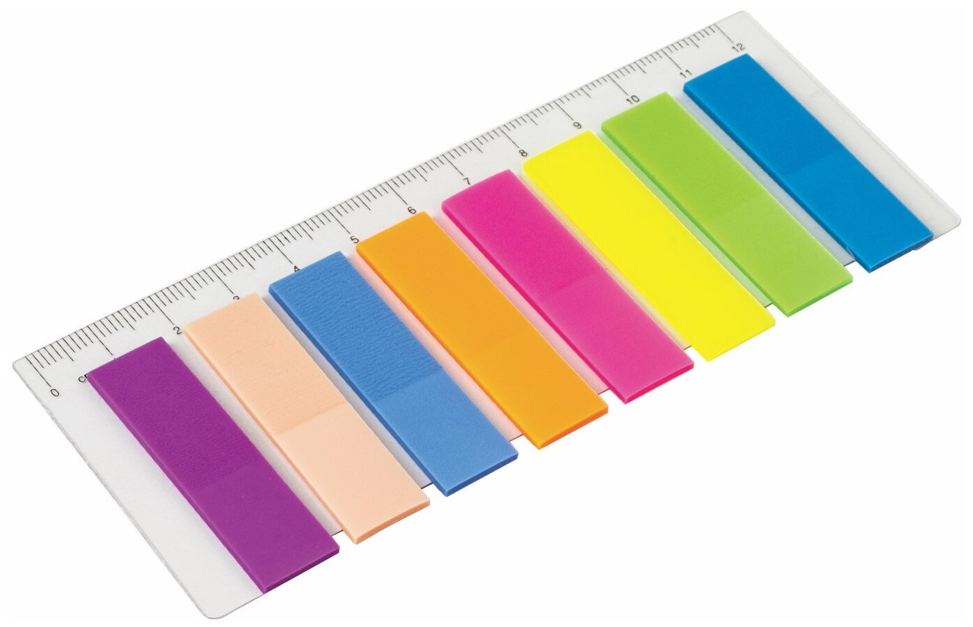Набор пластиковых закладок 8 неоновых цветов размером 45х8 мм состоит из 160 листов, по 20 закладок каждого цвета. Клейкий слой - 22 Н/м. Легко клеятся к любой поверхности и не оставляют следов. Материал закладок позволяет делать надписи ручкой и карандашом. Уложены на пластиковом основании. Поставляются в полиэтиленовом пакете с европодвесом.